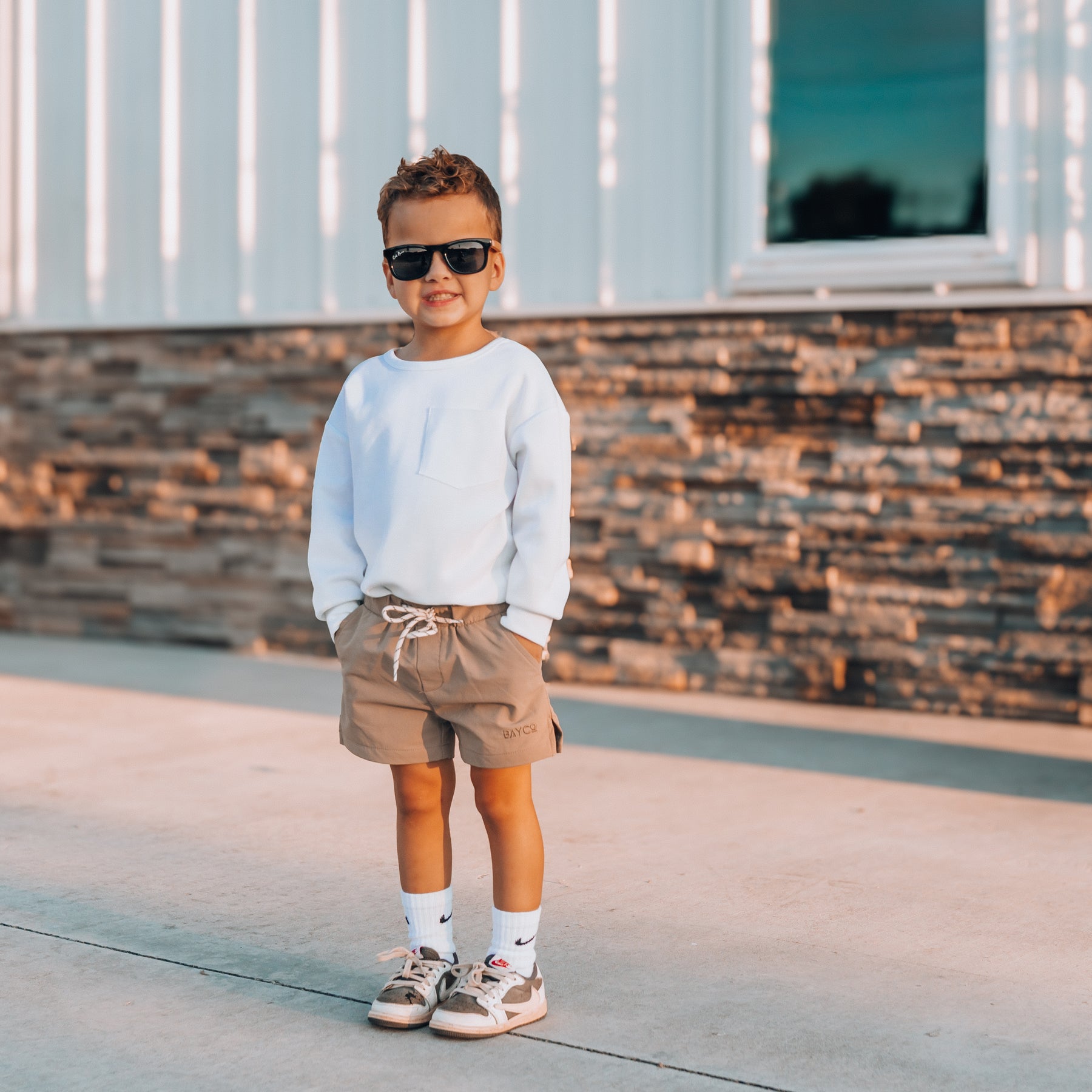 Details: We added back belt loops, a faux zipper, and a self-color embroidered logo to reinstate our original hybrid look - from church to the beach, pool to dinner! Pockets are also mesh to ensure drainage with a functional drawstring that is double stitched to ensure a secured fit.